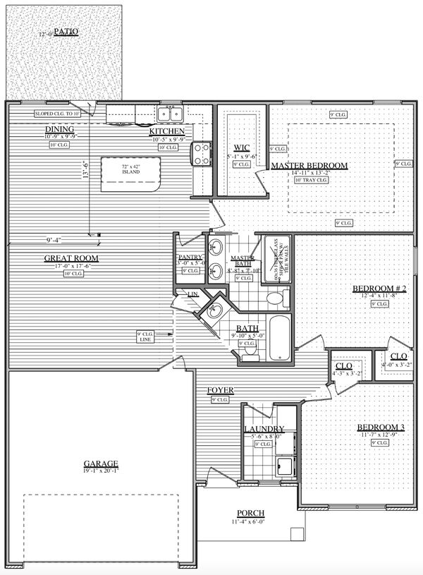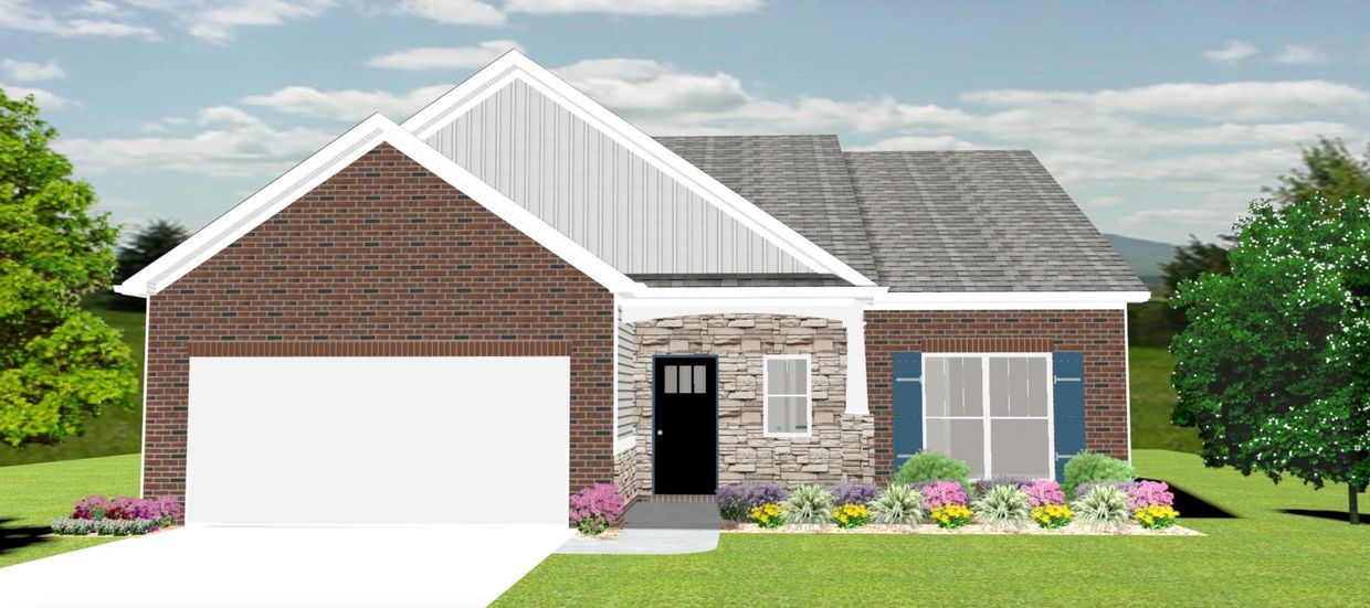 The Gavin Plan is about 1,350 finished square feet with 3 bedrooms, 2 full bathrooms, and a 2-car garage.